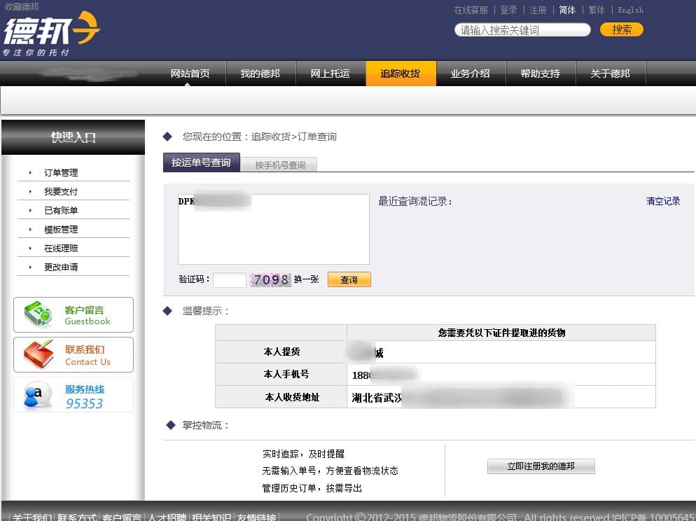 快递收货地址等信息查询